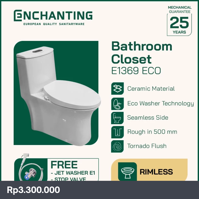 ENCHANTING Toilet / Kloset Duduk Siphonic Soft Close As 50cm E1369Eco